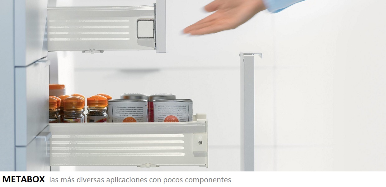 Los cajones y módulos extraíbles METABOX constan de muy pocos componentes. Use el probado sistema BOX para las más diversas aplicaciones en la cocina, el recibidor y el baño o en la oficina: METABOX incluso se puede utilizar en instalaciones comerciales.